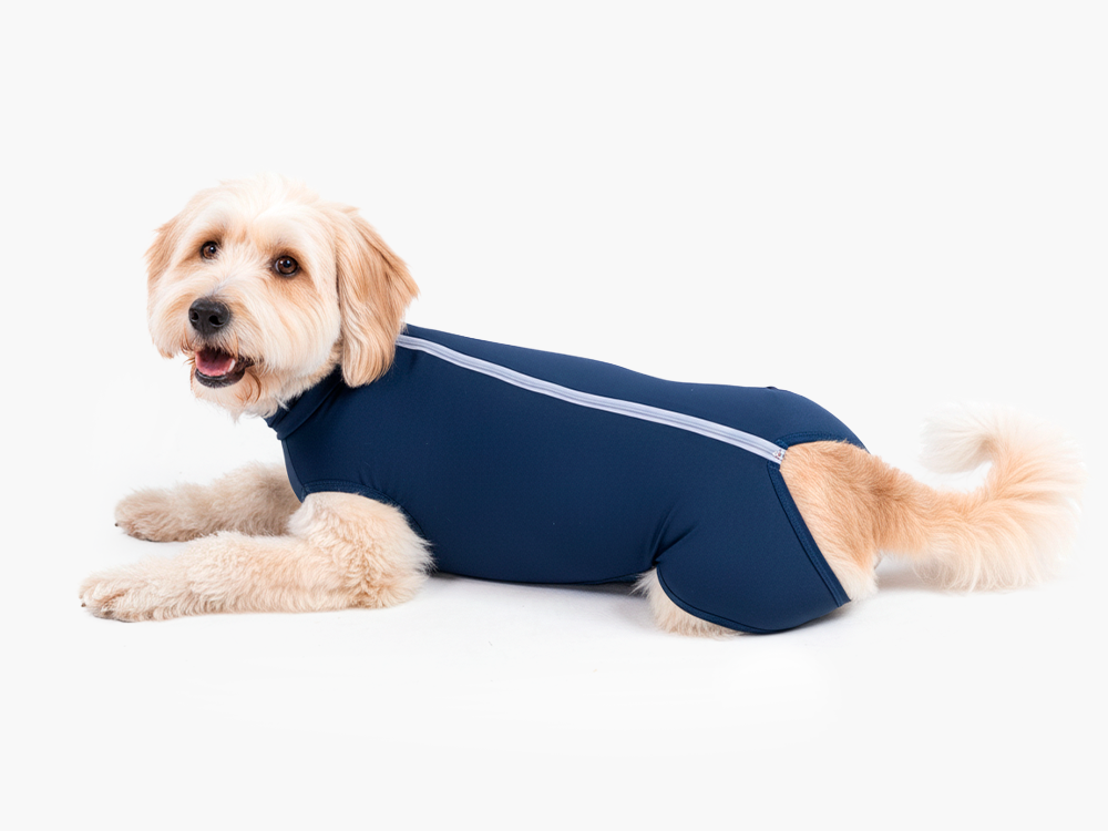 A Roupa Protetora para cães fêmeas foi desenvolvida para proteger a região abdominal e auxiliar na recuperação após castrações, cirurgias abdominais, esterilizações, mastectomias e tratamentos.
